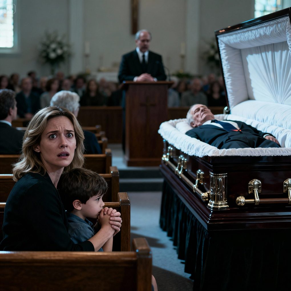 At my father’s funeral, I sat in the front row with my 5-year-old son on my lap, trying to hold myself together. In the middle of the pastor’s prayer, my son squeezed my hand and whispered, shaking, “Mommy… we shouldn’t be here.”“Why?” I mouthed, my throat tight.The pastor suddenly faltered mid-sentence, his voice trembling. “Did you… did you see your father’s neck?”I leaned closer to the coffin and looked.The moment I saw it, my blood ran cold. I grabbed my son—and went straight to the police.