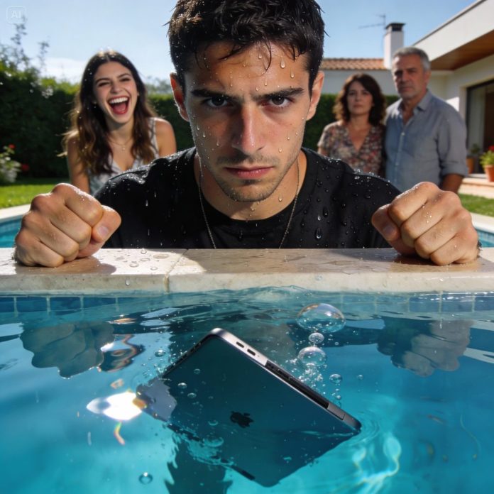 Al día siguiente, en una comida familiar, Camila se puso a actuar como si nada. Se reía fuerte, hablaba alto… hasta que en un momento se acercó a la piscina con mi portátil en la mano.
