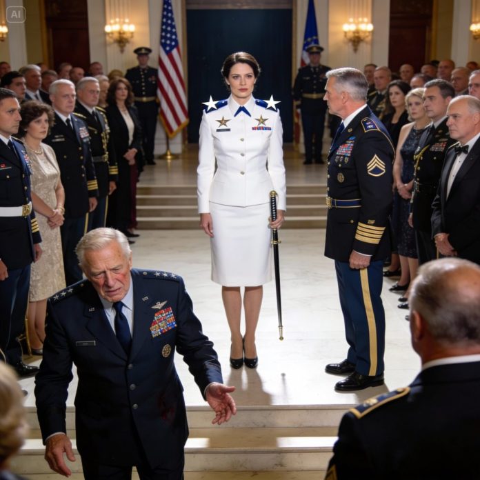 Outside, I paused for a moment before entering. My full dress uniform was immaculate, pressed to regulation. The ceremonial blade rested at my side, its polished surface catching the light. Two stars gleamed on my shoulders — not decorative, not symbolic, but earned through decades of service, command, and responsibility. I didn’t wear them for pride. I wore them because this was a formal event, and truth had a way of arriving most clearly when properly presented.
