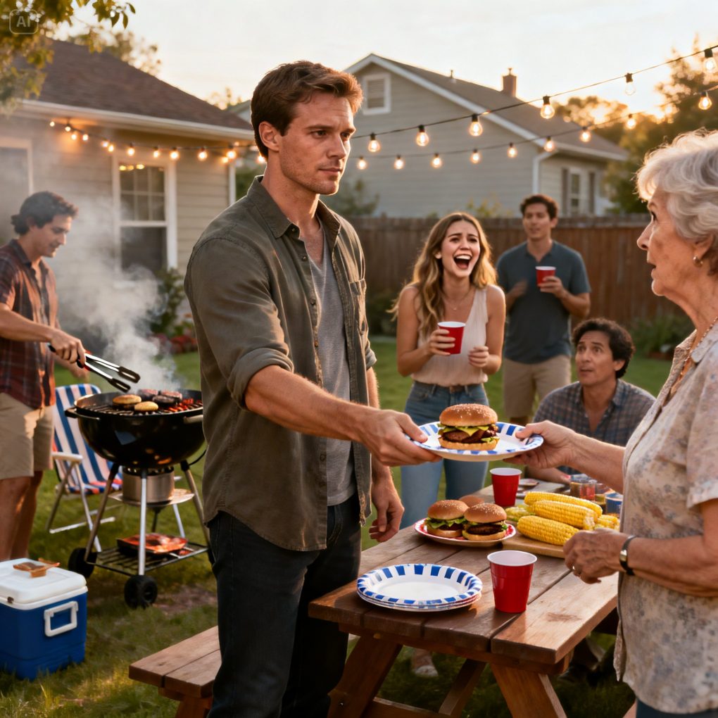 The BBQ was supposed to be easy. Loud music, grilled meat, folding chairs, and the kind of forced cheer that passes for family bonding on a hot afternoon.