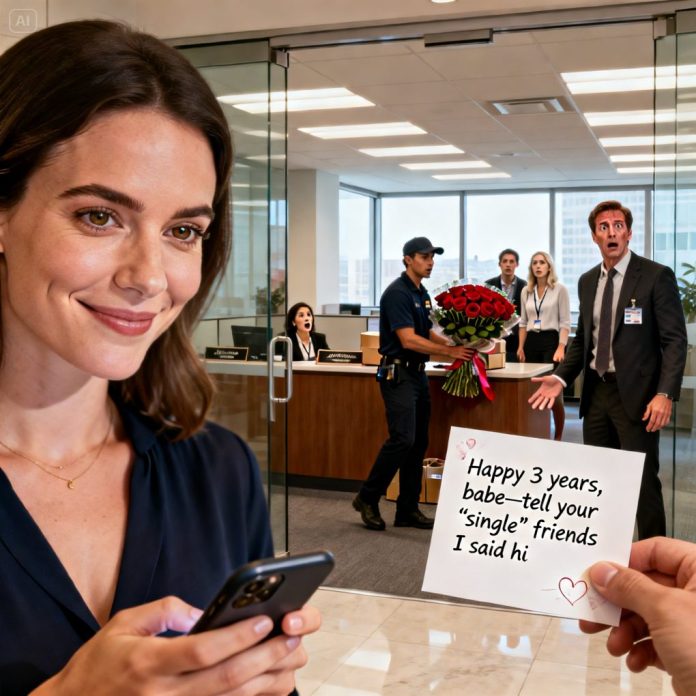 For three years, he swore, “It’s just easier if work doesn’t know,” while smiling at coworkers who thought he was single. Then I saw the truth—flirty messages, inside jokes, a whole life without me. So I sent anniversary roses to his office with a card: “Happy 3 years, babe—tell your ‘single’ friends I said hi.” Minutes later, his voice cracked on the phone: “What did you DO?!” I smiled… because this was only the beginning.