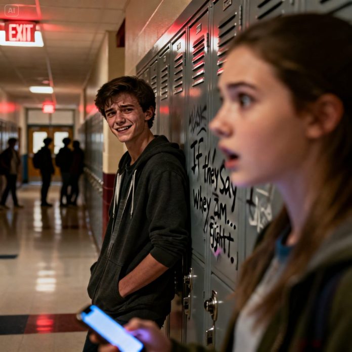 Everyone already labeled him “the school shooter” before anything happened—whispers, bets, cruel jokes. When I finally confronted him, he laughed, holding the weight of it all and muttered, “If they say I am… why fight it?” My blood ran cold. I didn’t argue. I walked away. Three weeks of silence followed. Last night, my phone lit up with his message: “I’m scared. I need help.” And now I have to decide—do I answer, or stay silent forever?