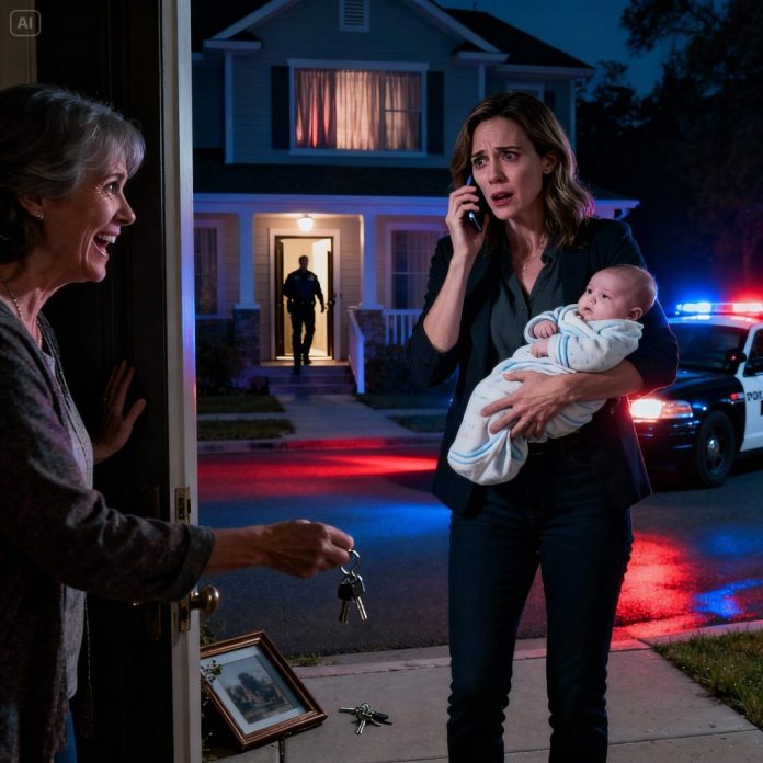 I felt my blood turn to ice. I stepped back, baby in my arms, and stared at my front door like it belonged to someone else now.