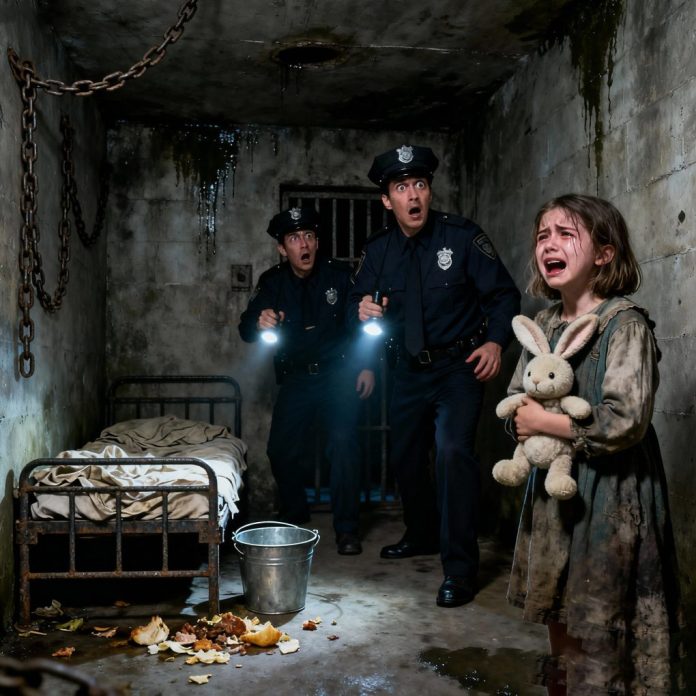 Hayes forced the door open. As they descended, Emily’s sobs grew clearer. The basement was cold, damp, and smelled of mildew. In the far corner, they found Emily—thin, pale, and trembling—sitting on a mattress on the floor. There were no toys, no blankets, just a single light bulb dangling above.