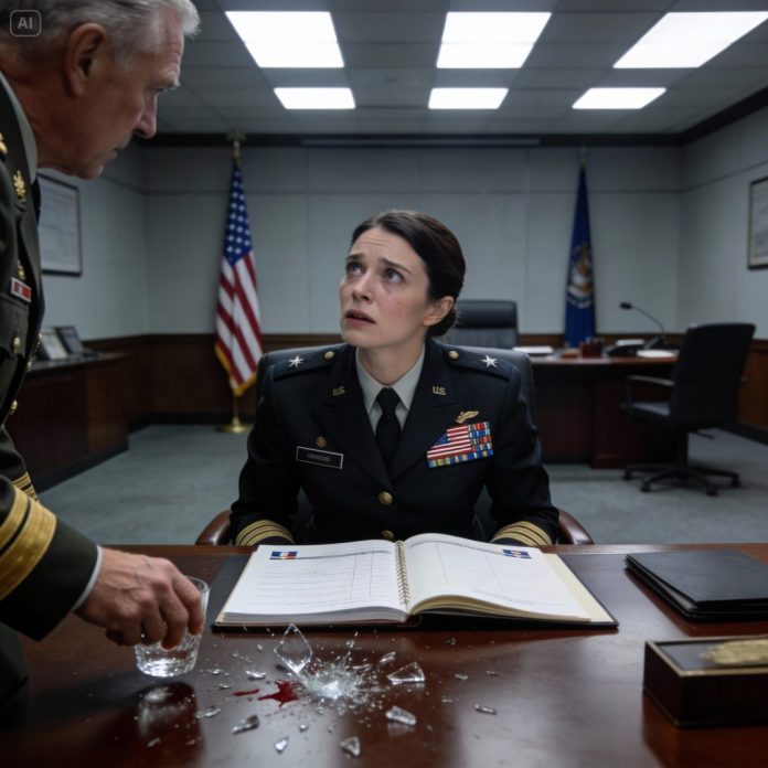 The general’s hand went still in midair. The glass he had been holding slipped from his fingers and shattered on the floor, the sound sharp and chilling in the sudden silence.