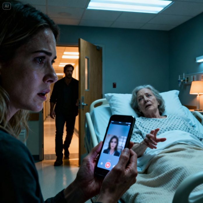 My mother-in-law collapsed out of nowhere and the ambulance lights followed us all the way to the ER. Machines beeped. Nurses rushed. I kept telling myself she’d be fine—until her grip found my wrist.Her eyes fluttered open, glassy and terrified. With what little strength she had left, she pulled me close and rasped, “Run… from my son…”Before I could even process it, she shoved her phone into my hand like it was evidence. Her fingers went limp.And at that exact moment, the door creaked open—