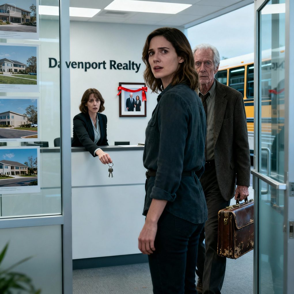 It was a normal Tuesday morning—crowded bus, wet umbrellas, the smell of coffee on coats. I was on my way to my sister’s real estate office because she’d asked me to drop off a folder of closing documents she’d forgotten at my place. I stood near the middle aisle, half-listening to a podcast, half-watching the city slide past the fogged windows.