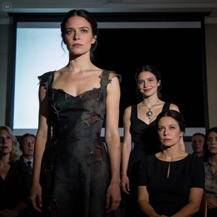 Before I could react, she grabbed the fabric near the hem and tore it. The sound was sharp, final. Threads hung loose against my leg. A few people gasped. No one stopped her.