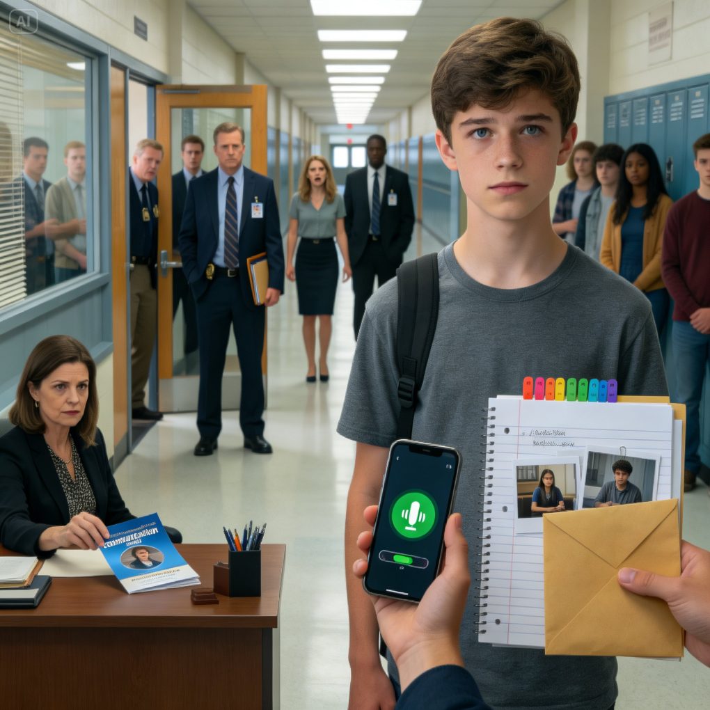 I didn’t pile on. I didn’t yell. I simply opened my phone and showed him the notes app—months of entries, each one time-stamped. Photos of bruises taken in the bathroom. Screenshots of messages from kids who threatened me. An audio clip from the hallway where a teacher told me to “ignore it” because “boys will be boys.”