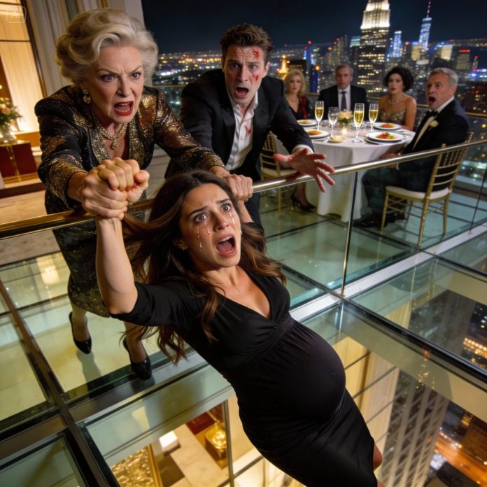 During dinner, I stood up, smiled, and announced I was pregnant. The whole table fell silent – then my mother-in-law suddenly burst out laughing and yelled, “She’s faking the pregnancy just to get our money!” Before anyone could react, she grabbed my hand and pushed me off the hotel rooftop to “prove” I was faking it. Exhausted and nearly unconscious, I woke up in the hospital with my husband beside me, pale as a ghost and trembling. But the moment the doctor walked in and opened his mouth, his words silenced the entire room in horror and disbelief.