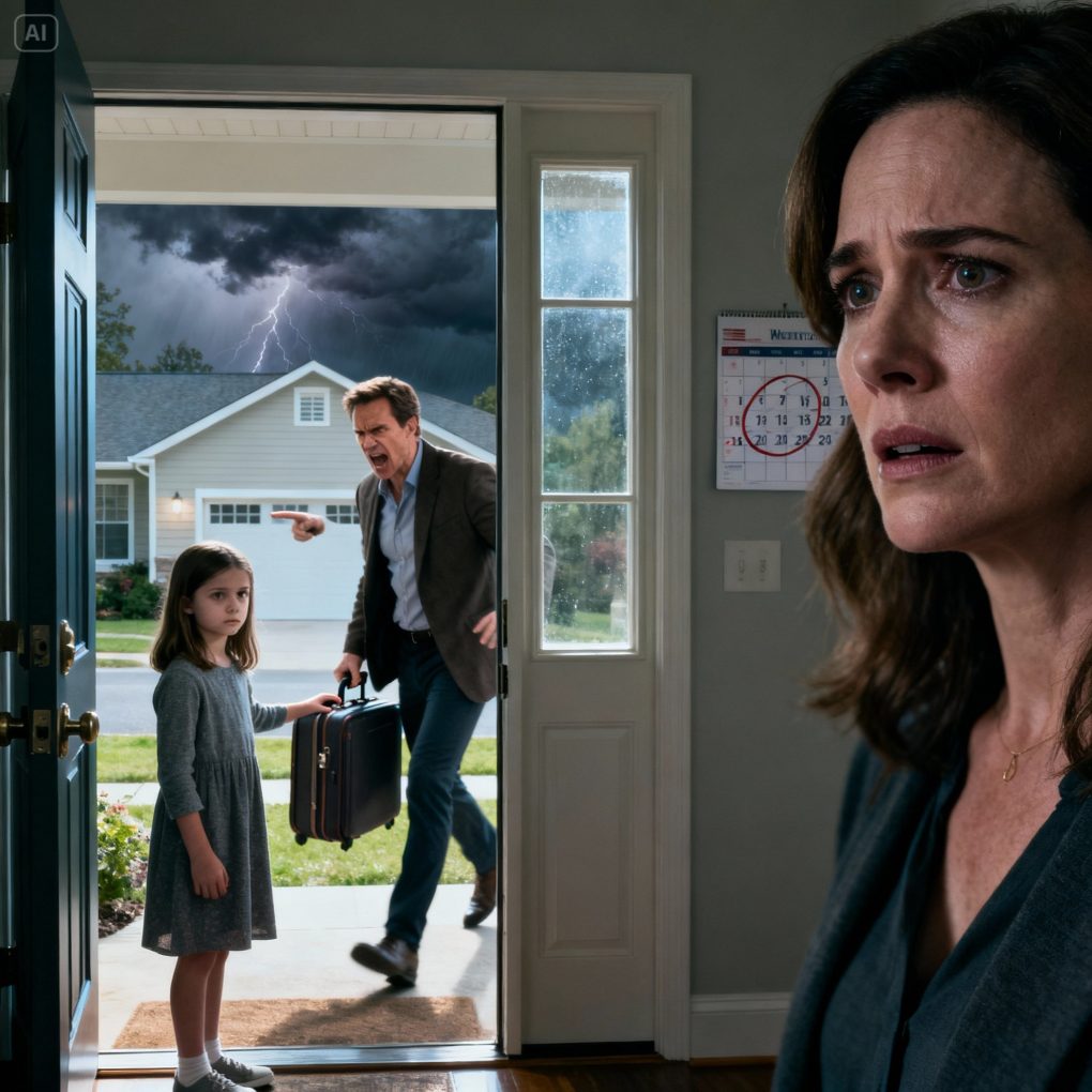The morning my husband was supposed to leave for his business trip, the house felt ordinary in a way I didn’t trust. Coffee brewing. Suitcase by the door. Our six-year-old daughter, Ellie Dawson, sitting cross-legged on the rug with her stuffed rabbit, watching her father move around the entryway.