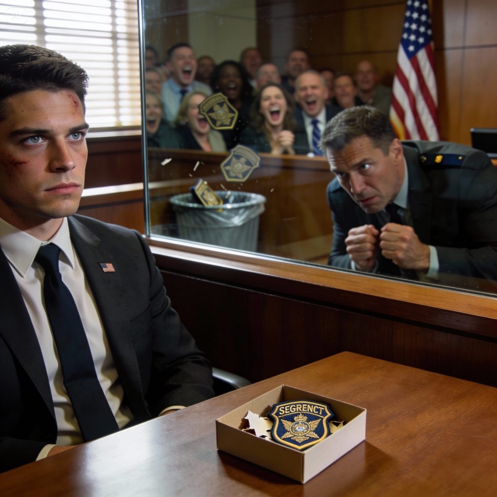 He tore the sergeant stripes off my chest and sneered, “Real combat veterans don’t end up like this.” The crowd laughed as he tossed them in the trash. I didn’t argue. I didn’t explain. Eight months later, I sat in the courtroom while the verdict was read. He started sobbing, whispering, “Please.” I finally met his eyes—because the truth he mocked was the evidence that buried him.