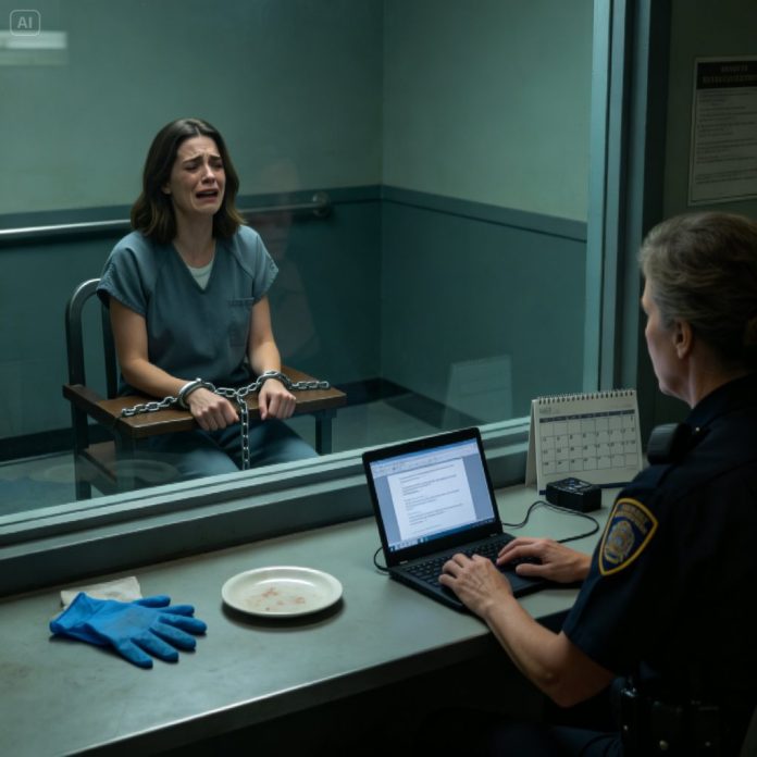 An officer stood beside her, calm, procedural. He pressed a button.
