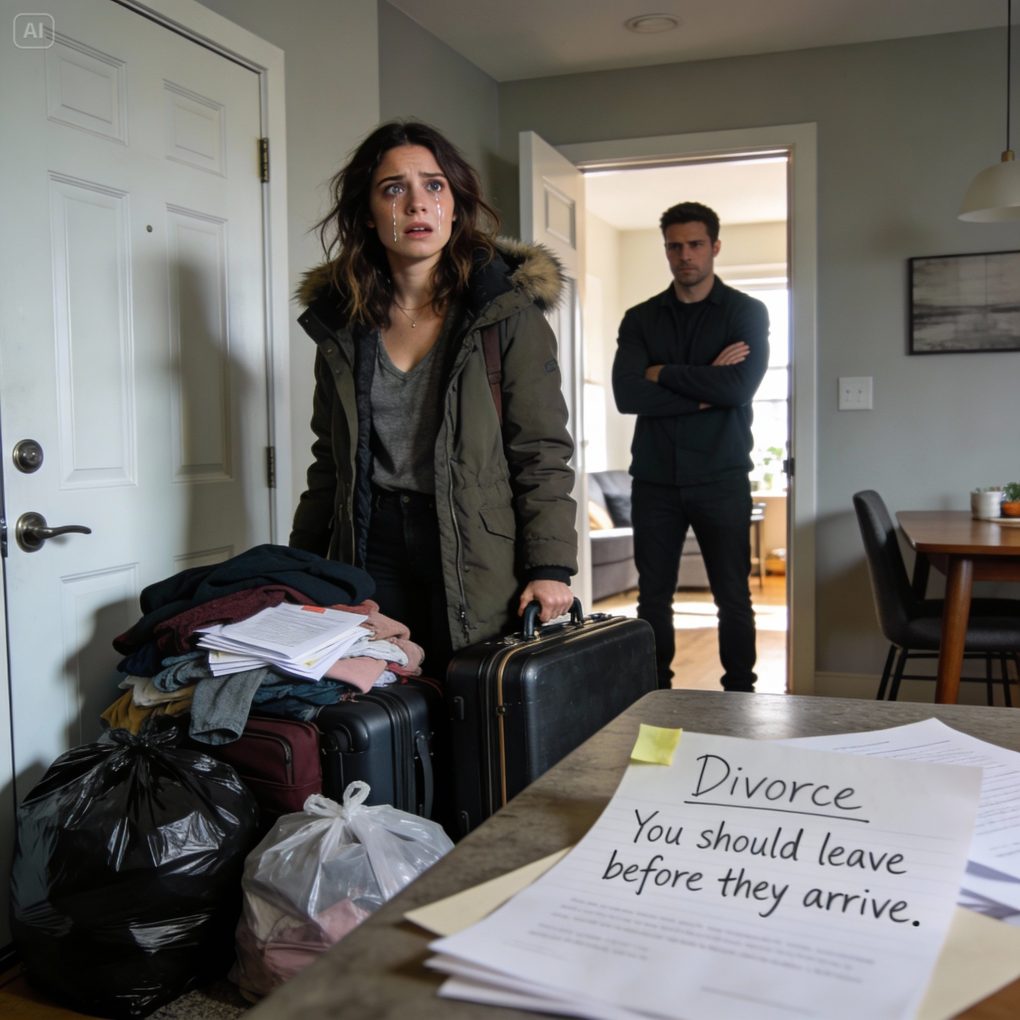 After receiving the substantial inheritance, I wanted to meet my husband. That night, I told him, “My parents lost their house. They’re moving in with us tomorrow.” He tried to smile, but I could clearly see the distortion in his eyes. The next morning, I walked into the living room and froze. All my suitcases, clothes, and documents were piled up in front of the door. On the table was a divorce paper he had prepared the night before… along with a cold note: “You should leave before they arrive.” I had no idea… the inheritance check was still in my coat pocket.