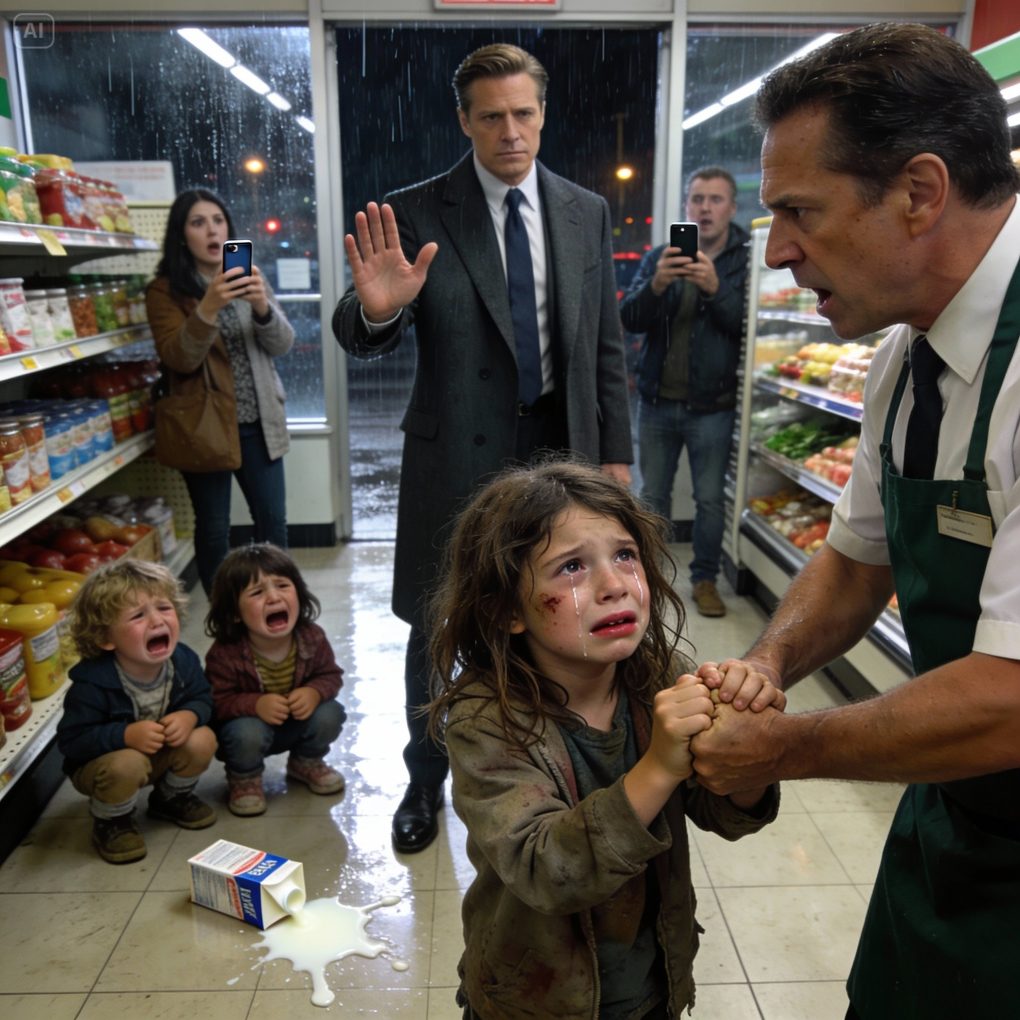 A homeless little girl was reported to the police by a store manager for stealing a box of milk for her two younger siblings, who were crying weakly from hunger — suddenly, a millionaire who witnessed the scene stepped forward..