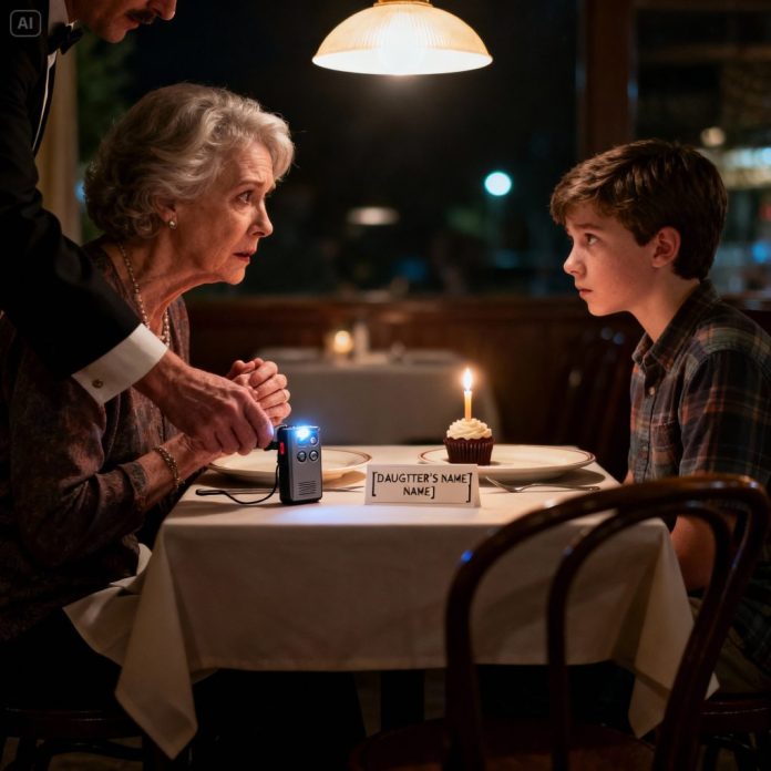 Shaken but curious, my grandson and I showed up anyway. Once we were seated, a waiter slipped a tiny recorder into my hand. The moment the voice came through, my hands started shaking.