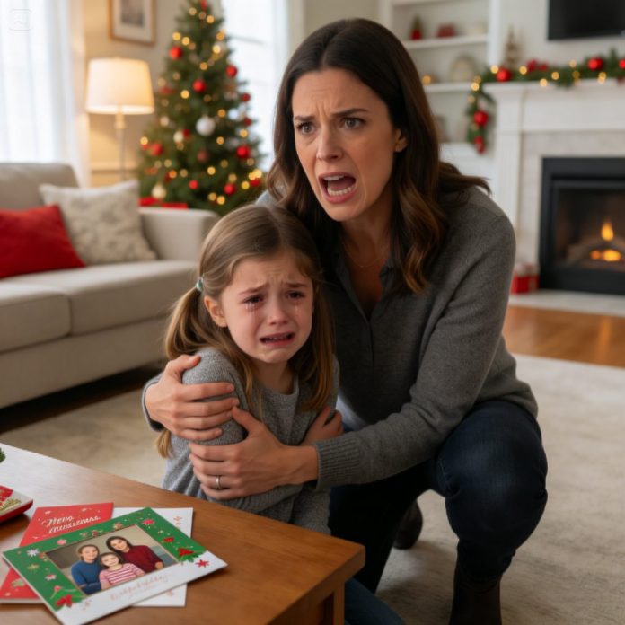 At the family photo shoot, my six-year-old daughter sat in the front row, smiling. When the Christmas cards arrived, she was gone—Photoshopped out of every single one. She stared at the pictures and whispered, “Mom… what did I do wrong?”