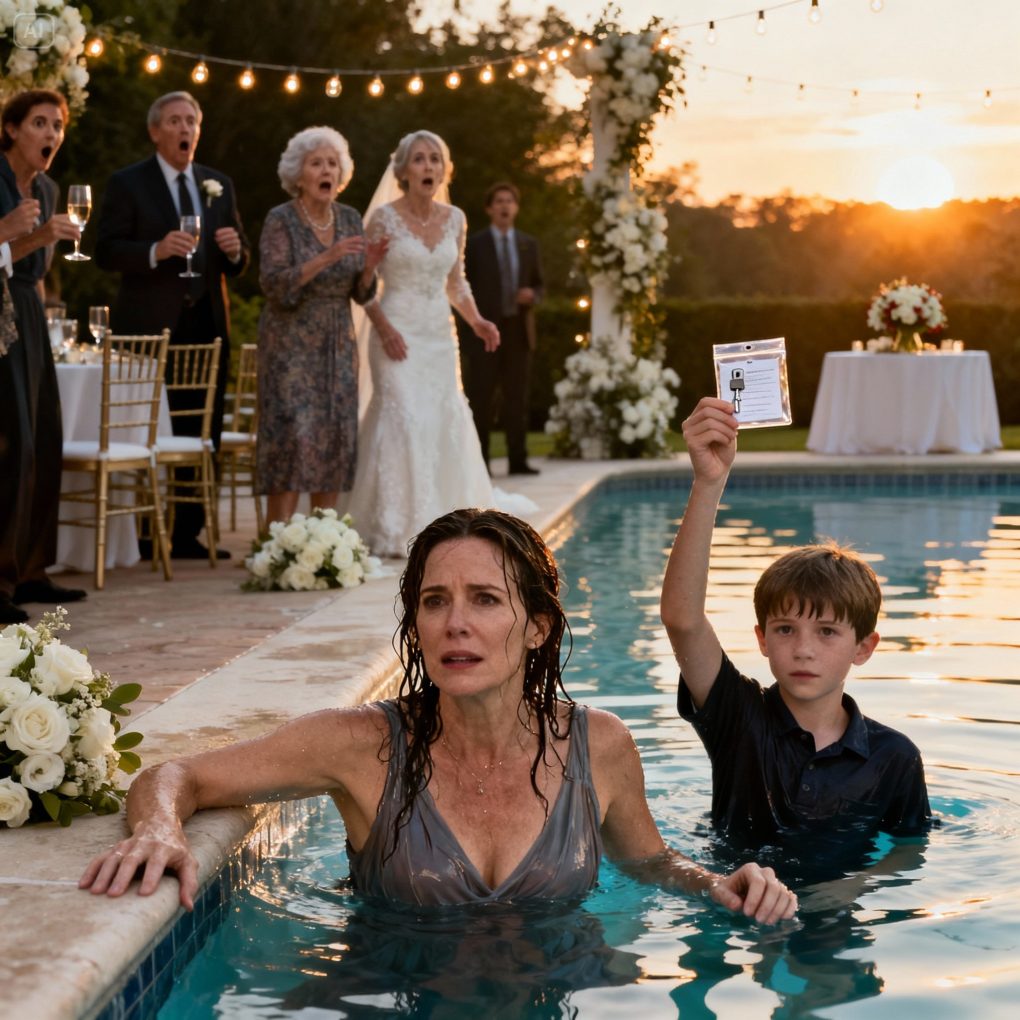 At my sister’s wedding, my mother said, “you’re single and alone. You don’t need a house. Give it to your sister.” When I refused, she shoved me into the pool. Then, my 10-year-old son pulled something from his pocket and said, “grandma… do you know what this is?” In that moment, my mother and sister froze in complete silence.