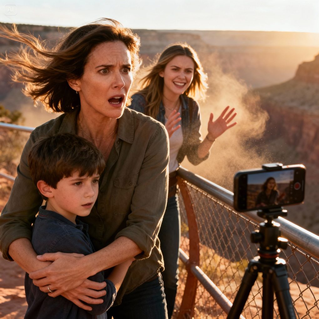 Rachel kept filming. She held her phone up, turning in slow circles, narrating loudly like she was making a travel vlog. “Look at the view! Look at Mom! Look at—” Her laugh was too sharp, too excited, like she was waiting for something.