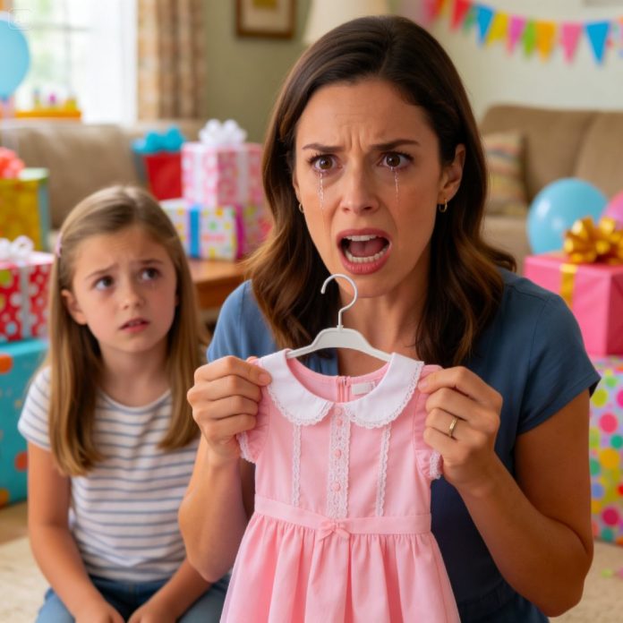 When my daughter opened the pink dress, she smiled—then froze. “Mommy… what is this?” she whispered. I took it from her, and my hands started shaking the moment I saw the detail they never meant me to notice. My parents called it a “gift.” I didn’t cry. I didn’t argue. I did something else instead. By the next morning, my phone wouldn’t stop ringing—and they knew they’d crossed a line.