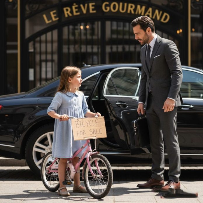 Thomas Miller, a 45-year-old CEO of a successful tech company, had just stepped out of his sleek black car when he noticed a little girl sitting on the curb. She couldn’t have been older than eight or nine, wearing a faded pink jacket and holding a piece of cardboard with uneven handwriting. The sign read: “Bike for me, but food for Mom first.”