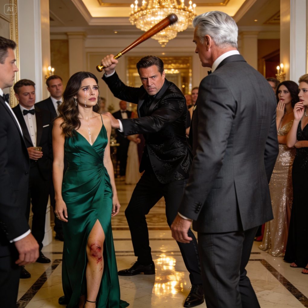 He swung the stick—not hard enough to break bones, but hard enough to humiliate. The first strike landed on her thigh through the fabric of her dress. Olivia gasped, stumbling. The room went silent for half a second, the kind of silence where even the rich suddenly feel poor in morals.
