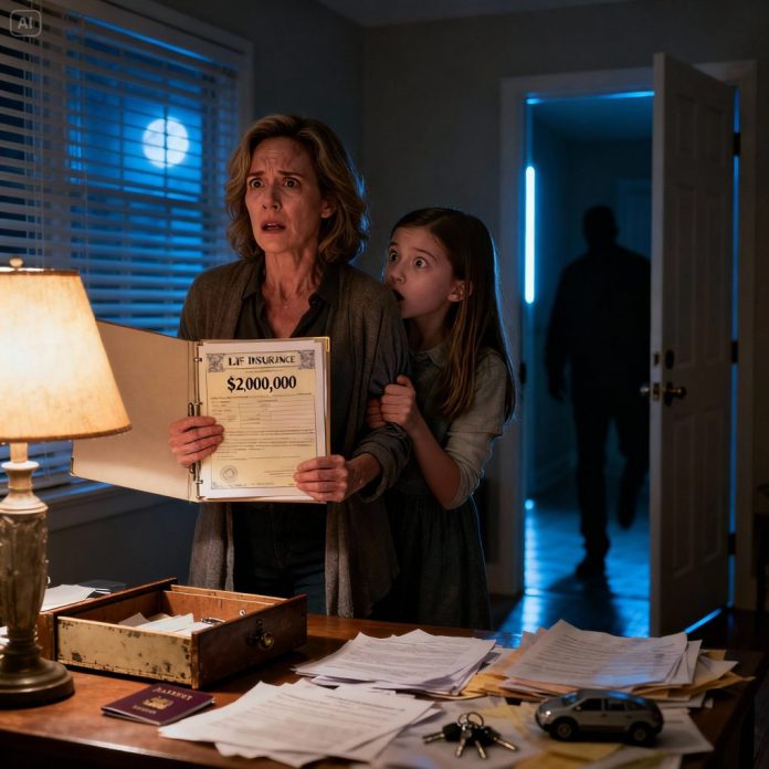 The police recovered the torn folder pages from the kitchen floor. They documented them. They asked Mark why there was a $2,000,000 policy on my life that I didn’t know about.