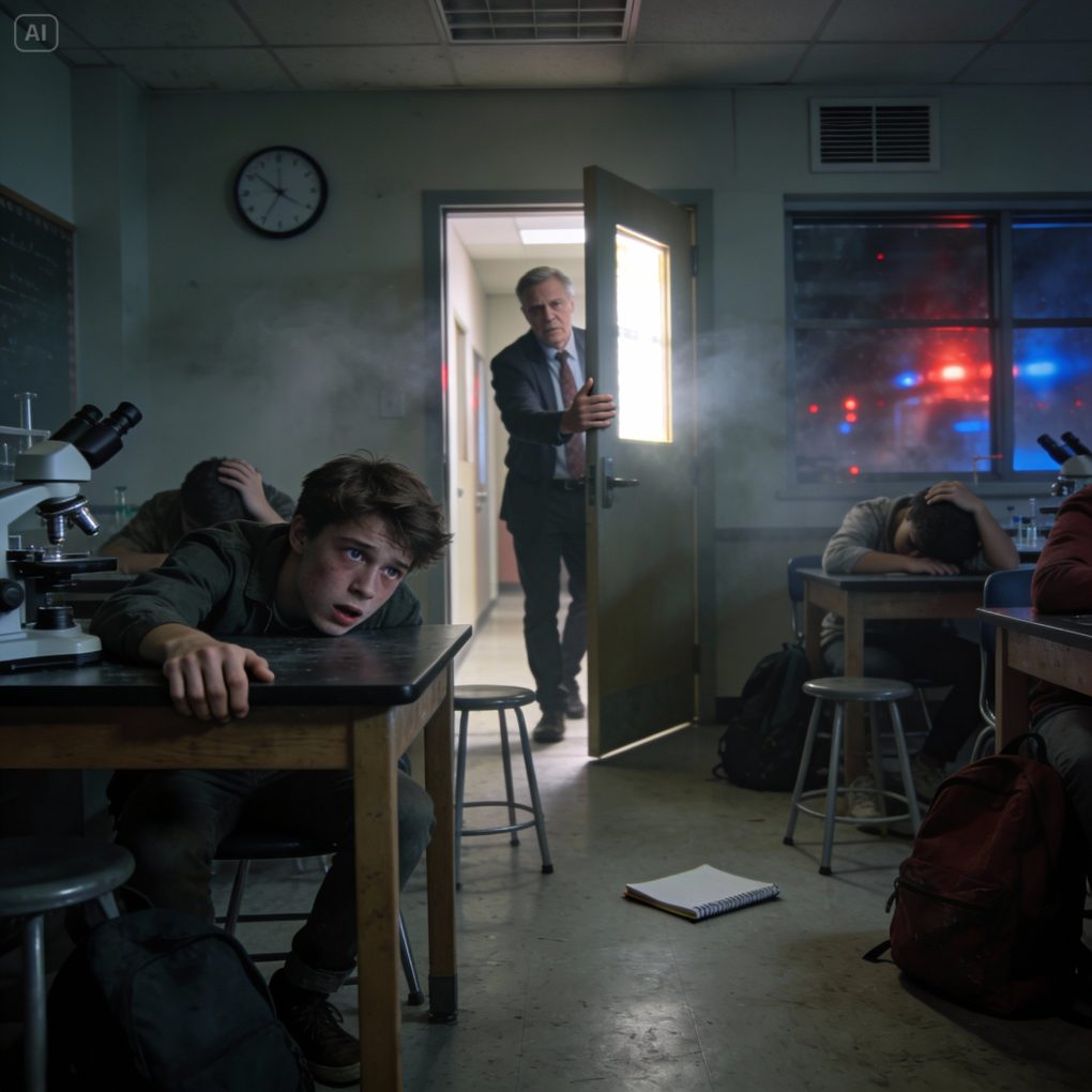 I tried to stand and nearly fell. My legs felt like rubber, disconnected from my brain. Two classmates grabbed my arms and half-dragged me into the hallway, which was filled with coughing students, teachers shouting directions, and the sharp, chemical smell that made my eyes sting.
