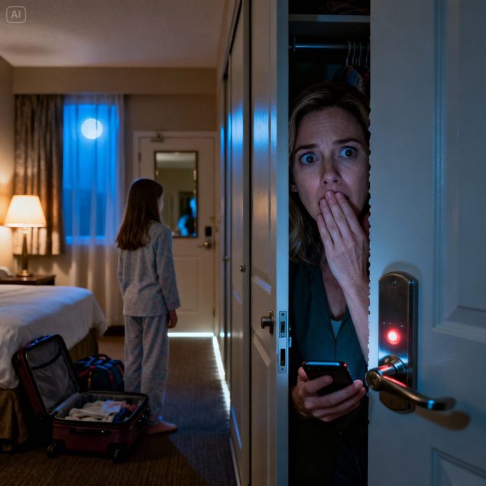Late at night on our family trip, my daughter’s fingers dug into my wrist. “Mom… closet. Now.”