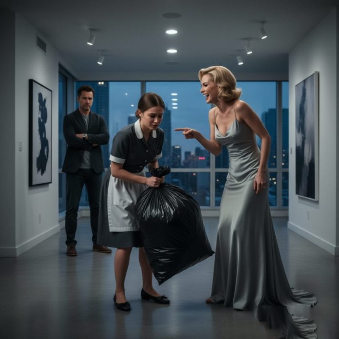 At that moment, Maria returned quietly, not realizing what she was walking into. Vanessa grabbed her purse in a huff and stormed out, muttering under her breath. The door slammed, leaving the penthouse eerily quiet.