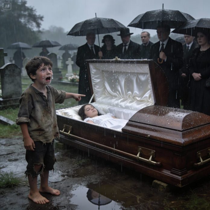 A homeless boy ran forward, shaking as he pointed at the coffin.