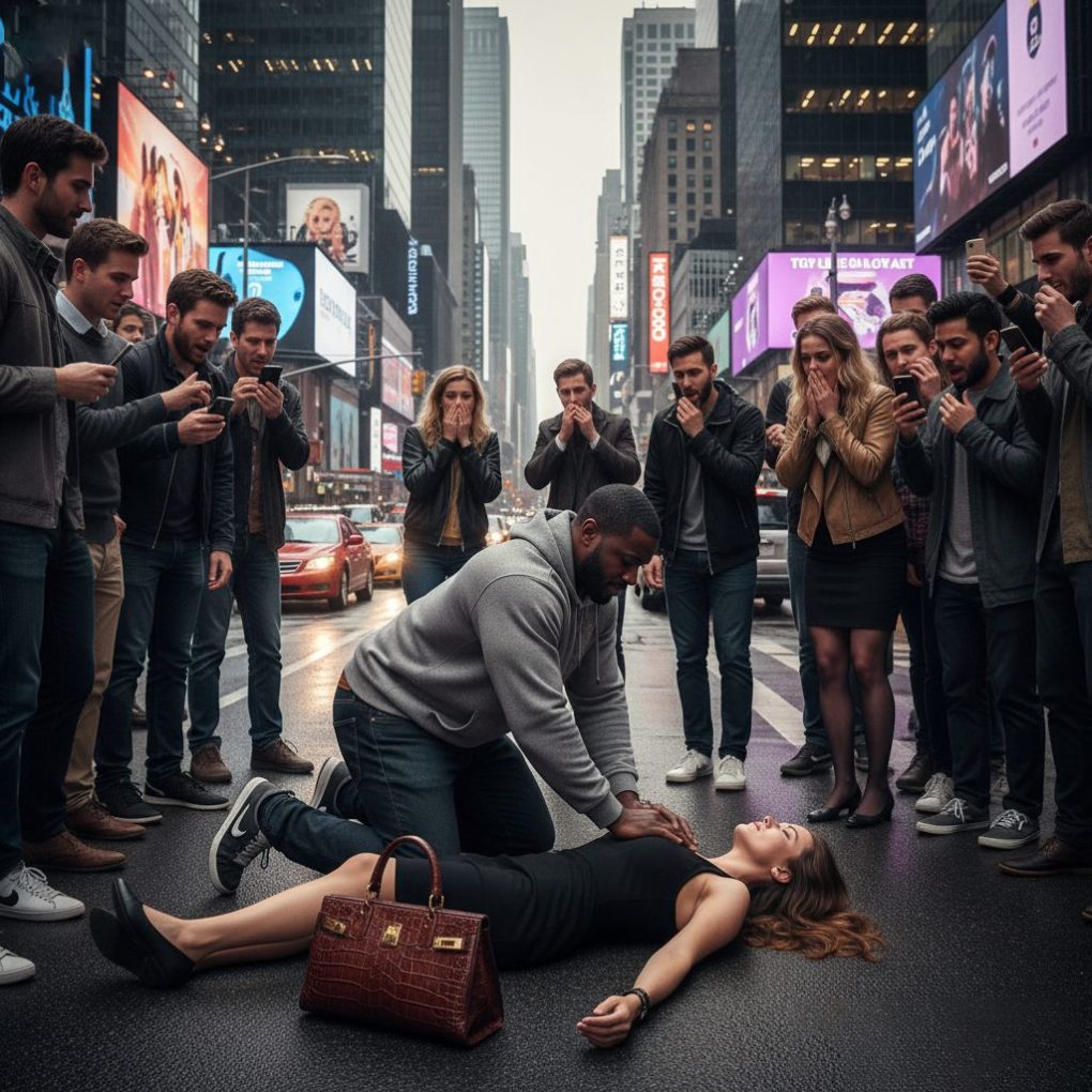 It was a chilly autumn afternoon in downtown Chicago when billionaire businesswoman Victoria Hayes, CEO of Hayes Global Enterprises, collapsed in front of the crowded plaza outside her company headquarters. People gasped but hesitated, frozen in shock at the sight of one of the city’s most powerful women crumbling onto the pavement. Her tailored navy suit and expensive heels contrasted starkly with the image of a woman suddenly powerless against her own body.