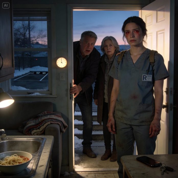 I was scrubbing blood off my hands after a double ER shift when Mom texted, “We took the car—your sister needs it more,” leaving me stranded on Christmas Eve. I walked home alone, ate cold noodles, and cried myself to sleep unemployed by morning. At dawn, there was pounding on my door. Dad’s voice cracked, “We need to talk.” I opened it—and realized Christmas hadn’t ruined me. It had exposed them.