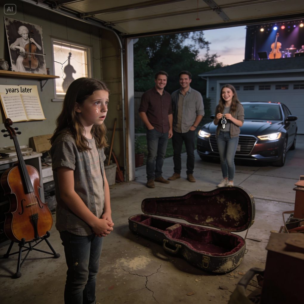 I was eleven when I found my grandmother’s antique cello hidden in the garage, already sold, already gone. “We needed the money,” my parents said, smiling as they handed my sister a brand-new car. I stood there shaking, whispering, “That was hers… and mine.” They laughed it off—until years later, when the truth surfaced and that stolen sound came back to haunt them in a way none of us expected.