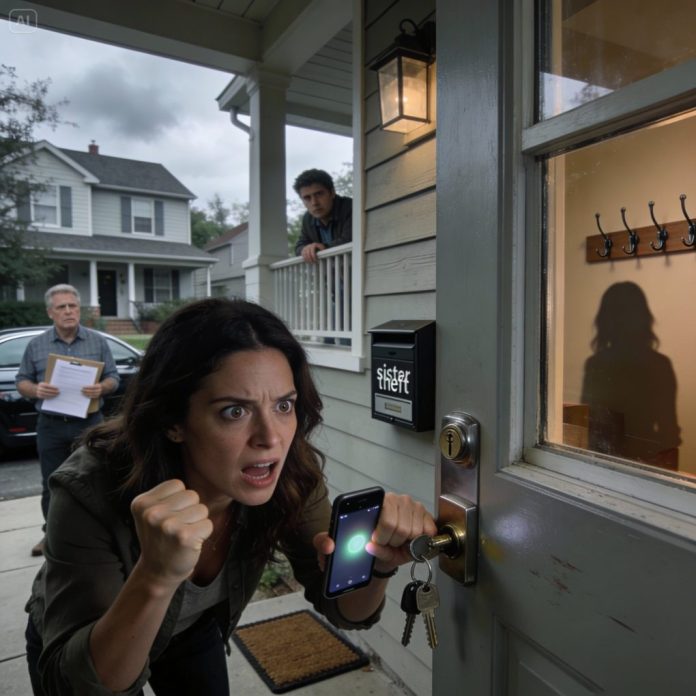 I stood in my sister’s hallway, staring at the empty hooks where my late mother’s keys used to hang. “I don’t know where they are,” she shrugged, too quickly. Weeks later, a stranger called me, whispering, “Your address is listed on the deed I just bought.” My heart stopped. I rushed to the house and saw the lock changed. As I banged on the door, one terrifying question echoed in my head: what else had she already sold?