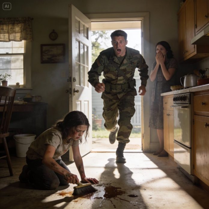 Her father, a soldier who had just come home from war, stood frozen at the sight of his daughter shaking on the floor.