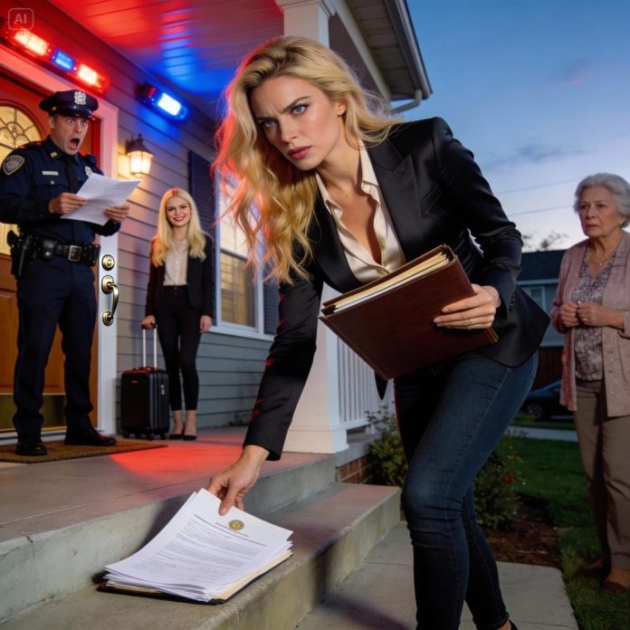 “My parents called and told me, ‘You have five days to get out. The house is your little sister’s now.’” I just laughed — and stayed silent. By the time her Uber stopped outside, the locks had already been replaced. Police lights were flashing. I set a thick file of paperwork on the doorstep and told the officer, “This house belongs to me.” And page by page, the truth unraveled — fraud, forged signatures, years of quiet lies. They thought they were forcing me out. They had no idea they’d just walked straight into the moment everything came crashing down.