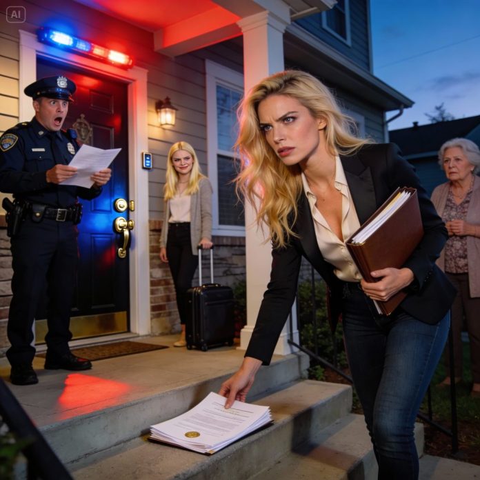 I didn’t argue. I walked to my car and retrieved a thick folder I had prepared days earlier. I placed it carefully on the front step, right between us. Then I looked at the officer and said, calmly, “I’m the rightful owner of this house.”