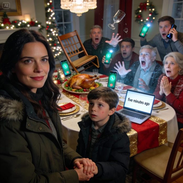 My family kicked me and my seven-year-old out during Christmas dinner, saying life was better without us. I didn’t cry or beg. I just smiled and said, “Then you won’t mind me doing this.” Five minutes later, they were panicking, calling nonstop, and begging me to come back and undo it.