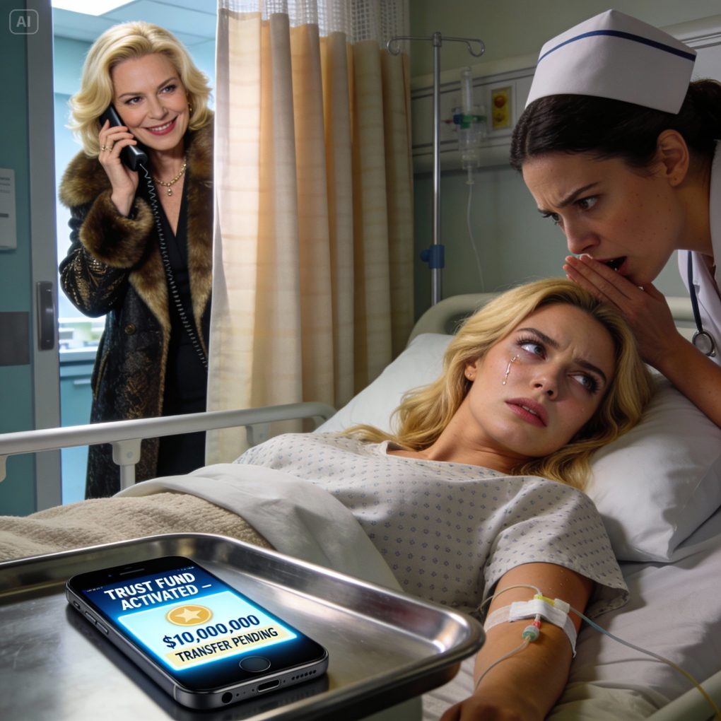 I woke up in the ER, my head spinning, and a nurse leaned in and whispered, “You’ve been drugged.” Then I saw my mother’s name pop up in a bank account alert. “She won’t remember anything,” she said on the phone, standing right outside my room. She thought I was weak. She was wrong. Because while I lay there pretending to sleep, my eight-figure trust fund was being activated — and my grandfather was already on his way, ready to show them what real consequences look like.
