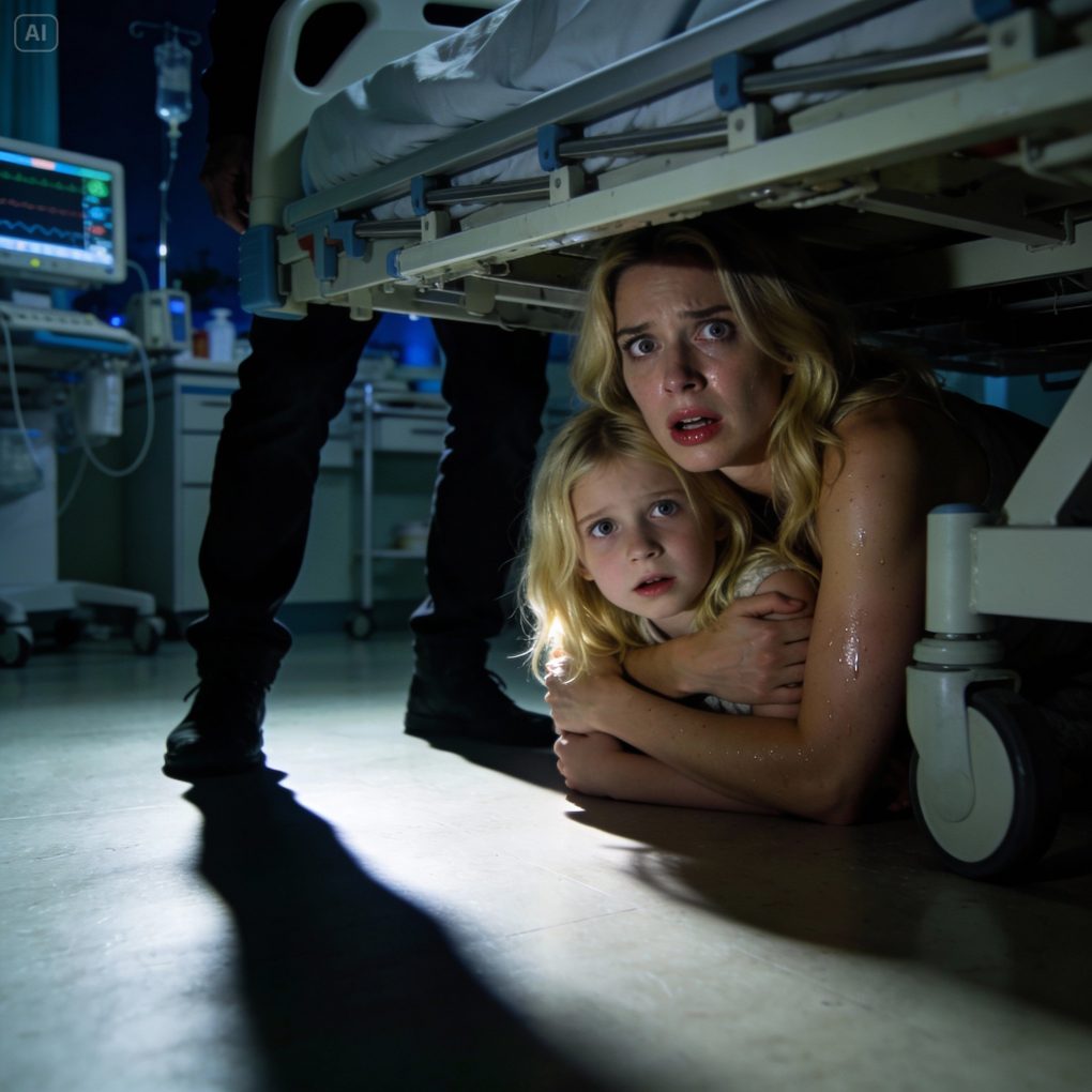 I had just given birth when my eight-year-old daughter burst into the hospital room, her eyes wide—strangely alert. She pulled the curtain shut, then leaned close to my ear and whispered, “Mom… get under the bed. Right now.” My heart clenched, but I did what she said. Both of us lay pressed together beneath the bed, trying to keep our breathing as quiet as possible. Suddenly, heavy footsteps echoed as someone entered the room. Just as I was about to look out, my daughter gently covered my mouth—her eyes filled with a fear I had never seen before. And then…