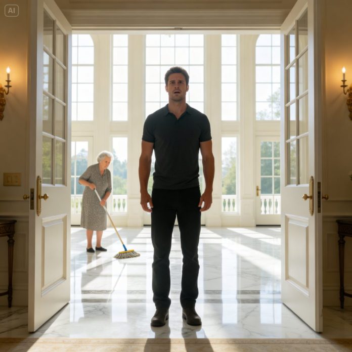 My mother was on her knees, slowly mopping the marble floor of the mansion. The sunlight streamed through the floor-to-ceiling windows, reflecting off the polished surface that had cost more than most houses. The air smelled faintly of citrus cleaner.