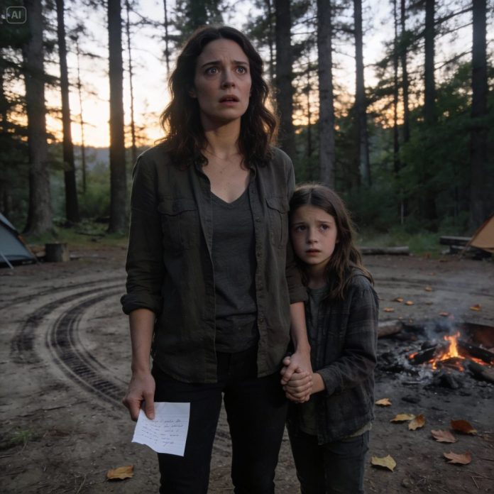We were camping with my parents and my brother’s family. I only stepped away for a quick walk with my 10-year-old daughter. When we returned, the campsite was empty—no cars, no tents, no one. No signal. Only a note: “This is for the best. Trust me.” My daughter clutched my hand and cried, “Mom, I’m scared…” In that moment, I realized the truth—they abandoned us. And ten days later… everything changed.