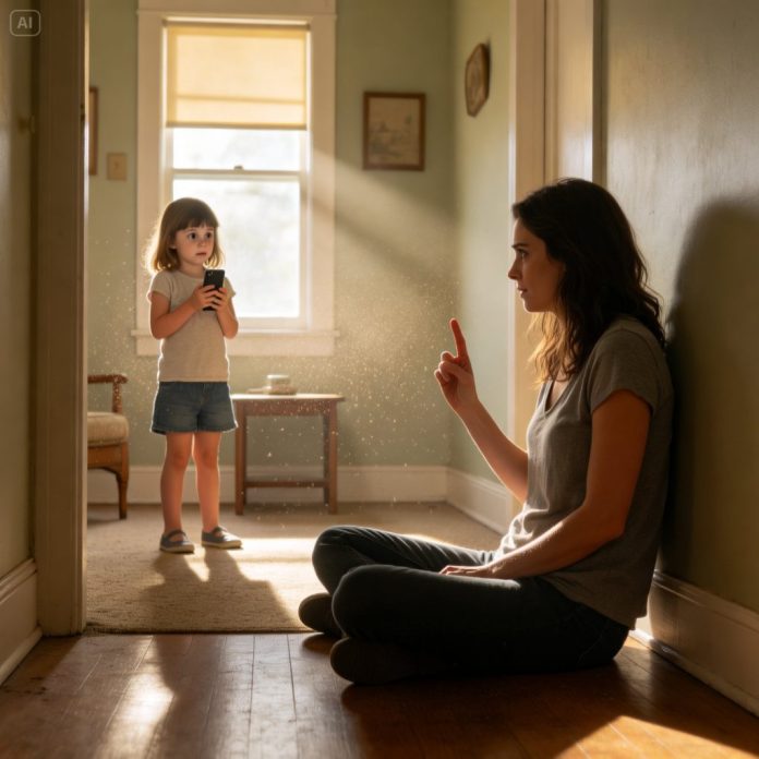 She ran to the corner where the old phone was hidden behind a stack of coloring books. Her hands shook so badly she almost dropped it. I heard the soft beeping of buttons being pressed.