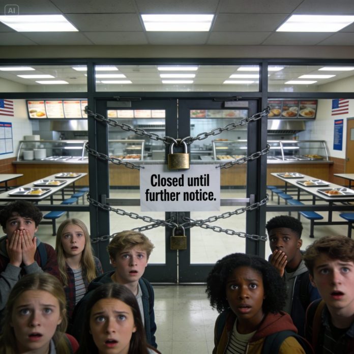 By Tuesday, resentment grew. Students complained louder. Someone spray-painted OPEN THE CAFETERIA on the hallway wall. Another student posted a video mocking the closure, calling the staff “dramatic.”