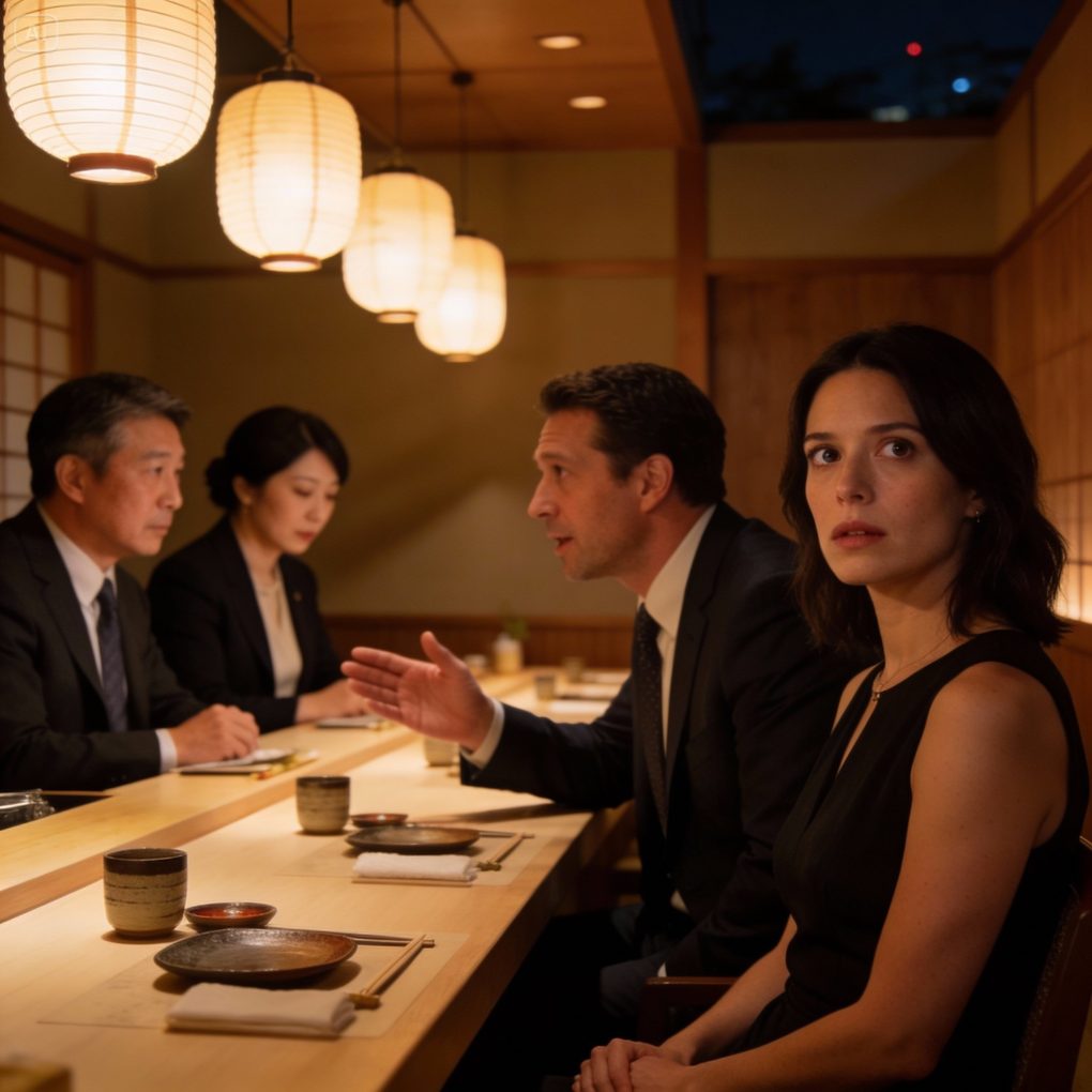 The dinner began smoothly. Polite introductions. Business cards exchanged with careful bows. I listened quietly, sipping tea, letting them assume I was just another foreign wife out of her depth.