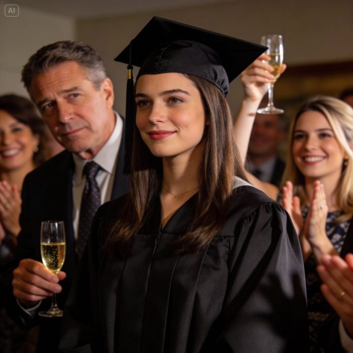 The graduation party had been planned down to the smallest detail, but the most important moment of the night was never on the schedule. White lights hung from the trees, glasses clinked softly, and neighbors congratulated me as if they had always believed I remember thinking how strange it felt to be celebrated in a place where I had learned to be invisible.