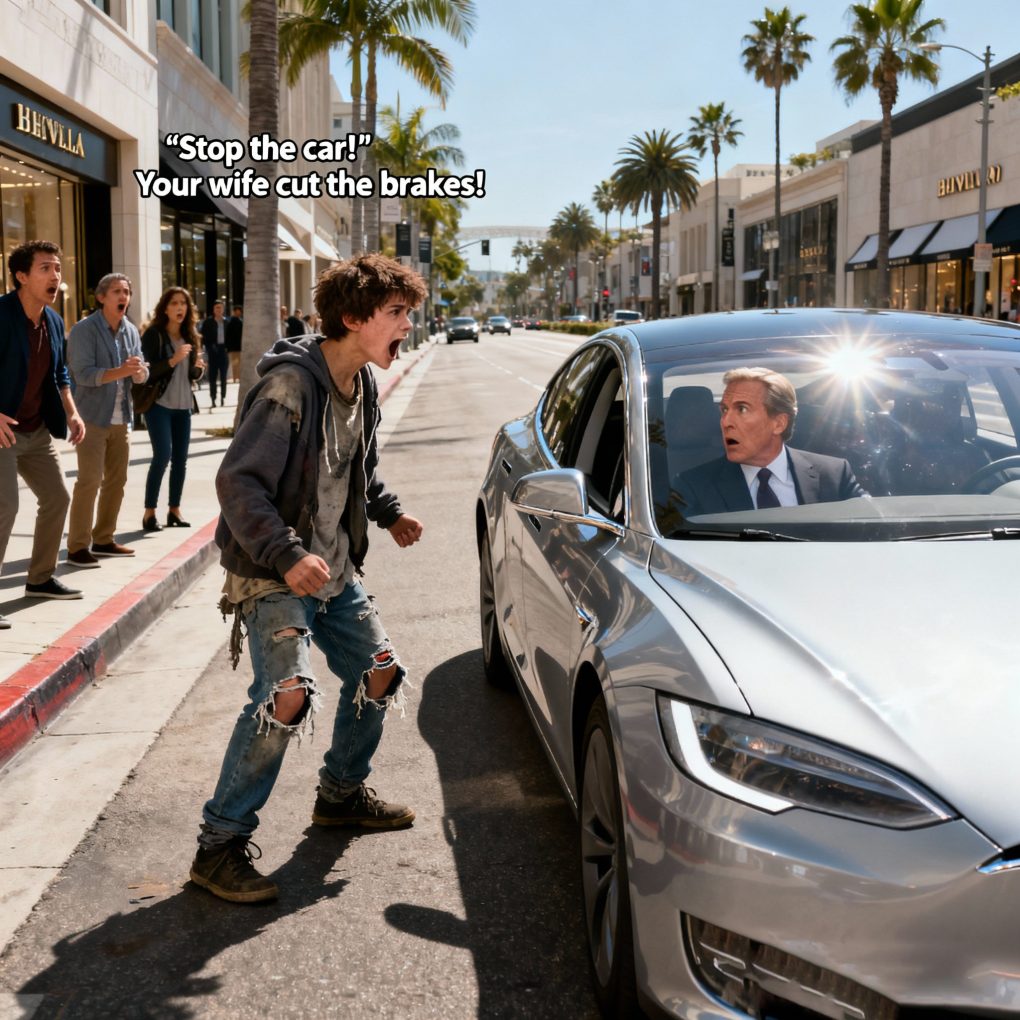 “Stop the car! Your wife cut the brakes!” — the homeless boy shouted to the billionaire, leaving everyone stunned…