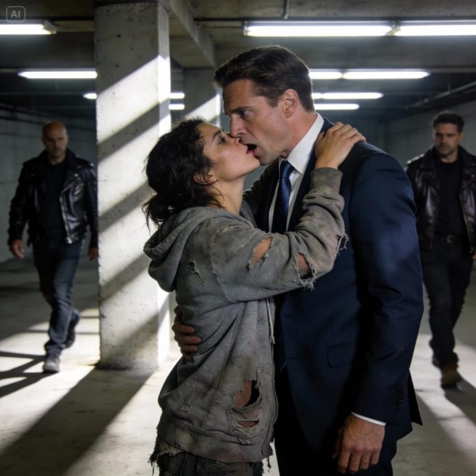 Footsteps echoed nearby. Two men walked past behind the concrete pillar, scanning the garage with an intensity that made Ethan’s skin prickle. The girl hugged him tighter, partly shielding him from view, partly using the kiss as a disguise. Her fingers trembled only slightly.