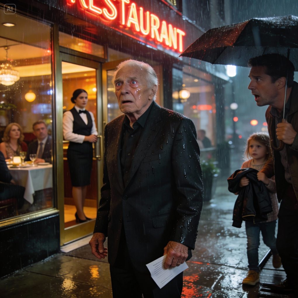 I turned seventy with a quiet kind of grief. Not the loud grief of funerals or fresh loss, but the slow ache of living long enough to miss someone in ordinary moments. My wife, Eleanor, had been gone for eight years, yet her absence still sat beside me like an empty chair. Every year on my birthday, we used to go to the same restaurant—Le Jardin—because it was her favorite. She loved the soft music, the way the candles made the glassware glow, the way the waiters always remembered her name. This year, I wanted to honor her. I didn’t want gifts. I didn’t want speeches. I just wanted one dinner where I could sit with her memory and feel, for an hour, like life was still gentle. So I made a reservation. I even wore the navy suit Eleanor used to compliment, the one she said made me look “handsome in a stubborn way.” I arrived early, holding a small bouquet of lilies, her favorite flower. But the moment I stepped inside, the hostess froze. Her smile tightened like a door locking. “Sir… may I help you?” “I have a reservation,” I said warmly. “For Thomas Whitaker. Seven o’clock.” She glanced down at her tablet, then up at me again with a strange hesitation. Behind her, a manager appeared, whispering something into her ear. “I’m sorry,” she said finally, voice clipped. “We won’t be able to seat you tonight.” I blinked. “Excuse me?” The manager stepped forward, his expression stiff with rehearsed discomfort. “Mr. Whitaker, we’ve been informed by your family that you’re… not mentally stable at the moment. They asked us not to serve you.” The words hit like ice water. “My family?” I repeated. He nodded awkwardly. “Your daughter called earlier. She said you might become confused or disruptive.” My bouquet trembled in my hand. “My daughter, Julia, said that?” “I’m very sorry,” he murmured, already looking past me. Outside, rain had begun to fall, cold and steady. I stood under the awning, lilies drooping, the streetlights blurring in the wet pavement. Cars passed, indifferent. Inside, laughter rose from other tables. I whispered to myself, “Is this what I deserve?” After everything I had done for Julia… after raising her, after giving her a life Eleanor would have been proud of… was I now a problem to be managed? A shame to be hidden? Then I heard a voice beside me. “Sir…” I turned. A man stood under the awning too, holding the hand of a little boy in a raincoat. His face was kind but tense, as if he’d been debating whether to speak. “Your daughter doesn’t know the truth,” he said softly. My breath stopped. “What truth?” I whispered. His eyes flicked toward the restaurant door. “The truth about what happened to your wife. The truth about why Julia is doing this.” My heart pounded. Eleanor’s name hung between us like a ghost. The man leaned closer, voice barely audible over the rain. “Mr. Whitaker… someone has been lying to her for years.” And in that moment, standing alone on my birthday, I realized my life was about to split open in a way I never expected.